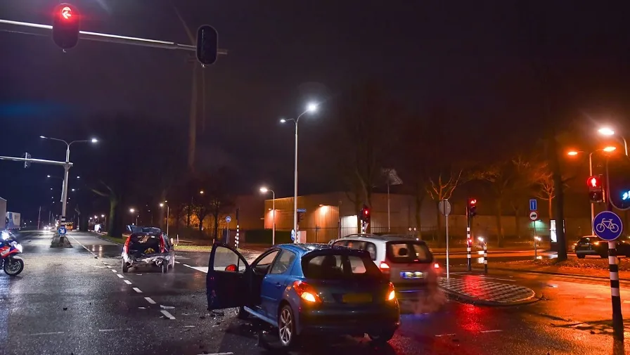 De auto’s raakten door de aanrijding flink beschadigd. Het ongeluk is gebeurd door een kapot verkeerslicht.